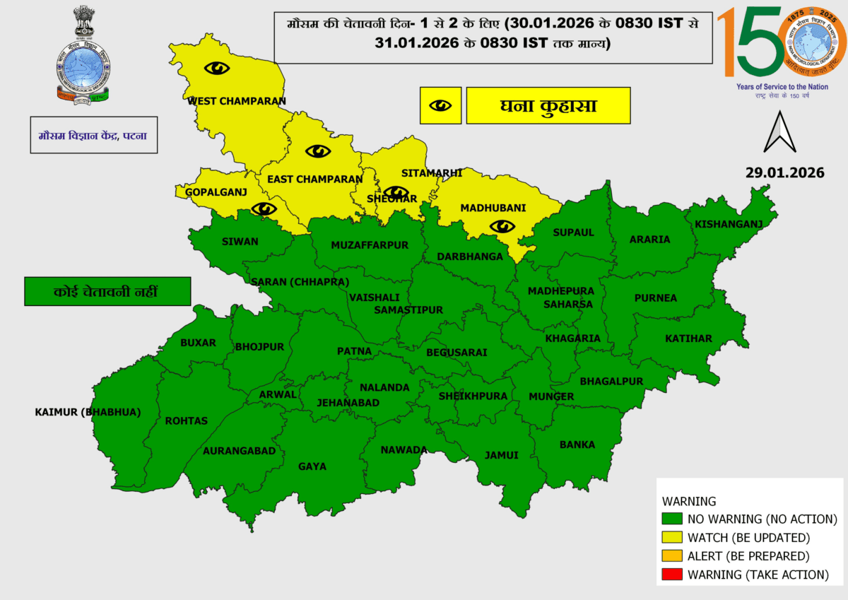 बिहार के इन 6 जिलों में येलो अलर्ट, छाएगा घना कोहरा, एडवाइजरी जारी