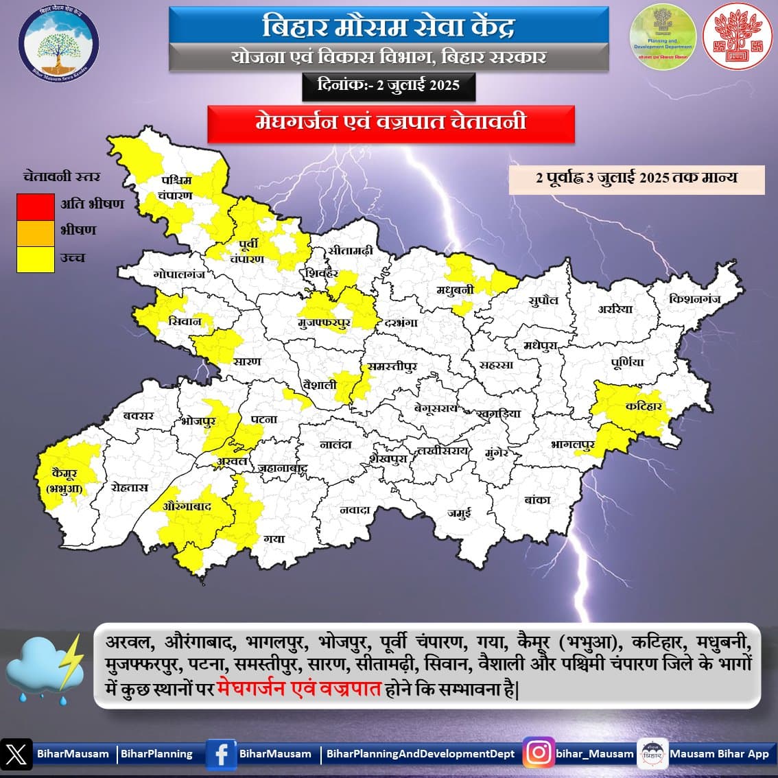 बिहार मौसम सेवा केंद्र ने जारी किया चेतावनी अलर्ट