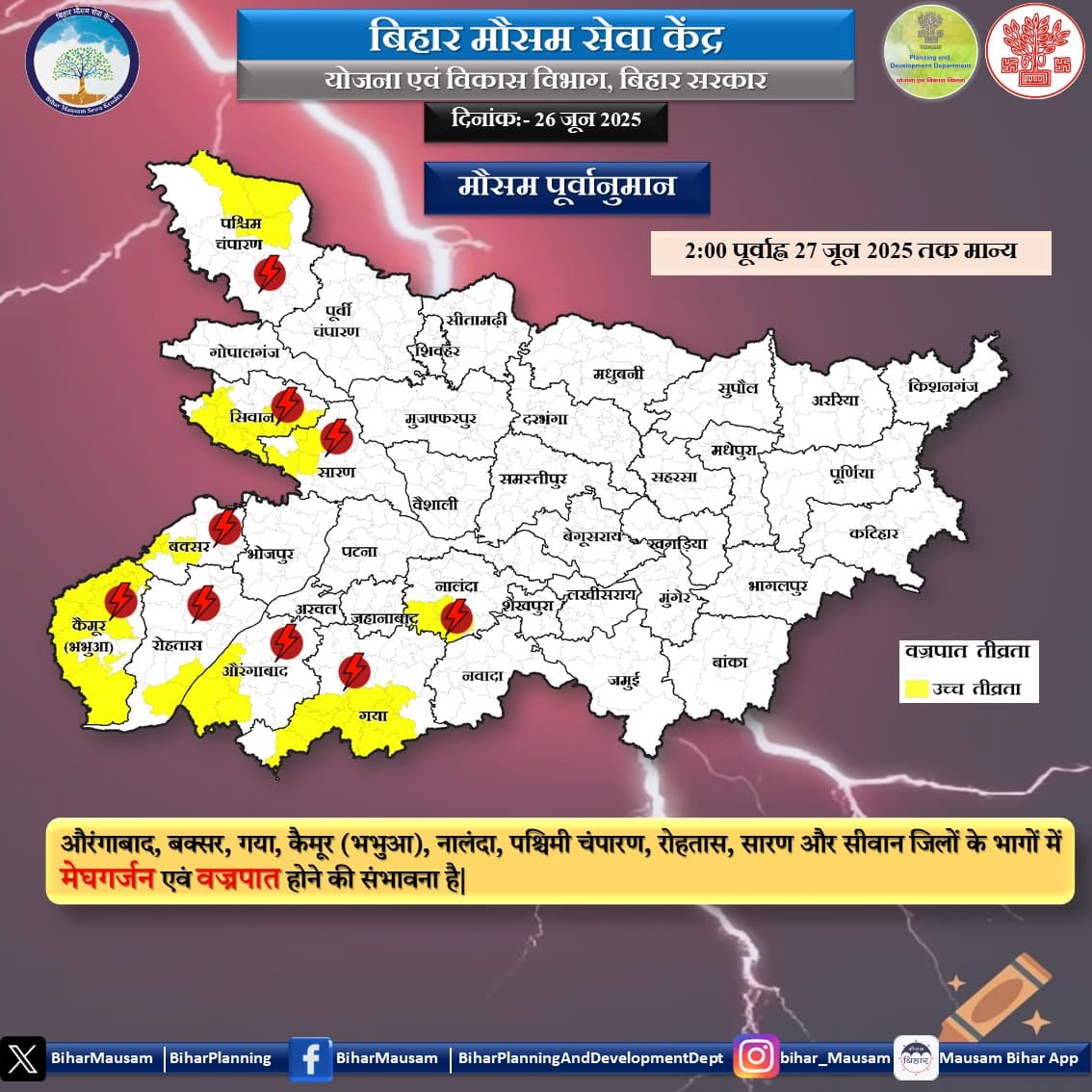 बारिश और वज्रपात का अलर्ट जारी…