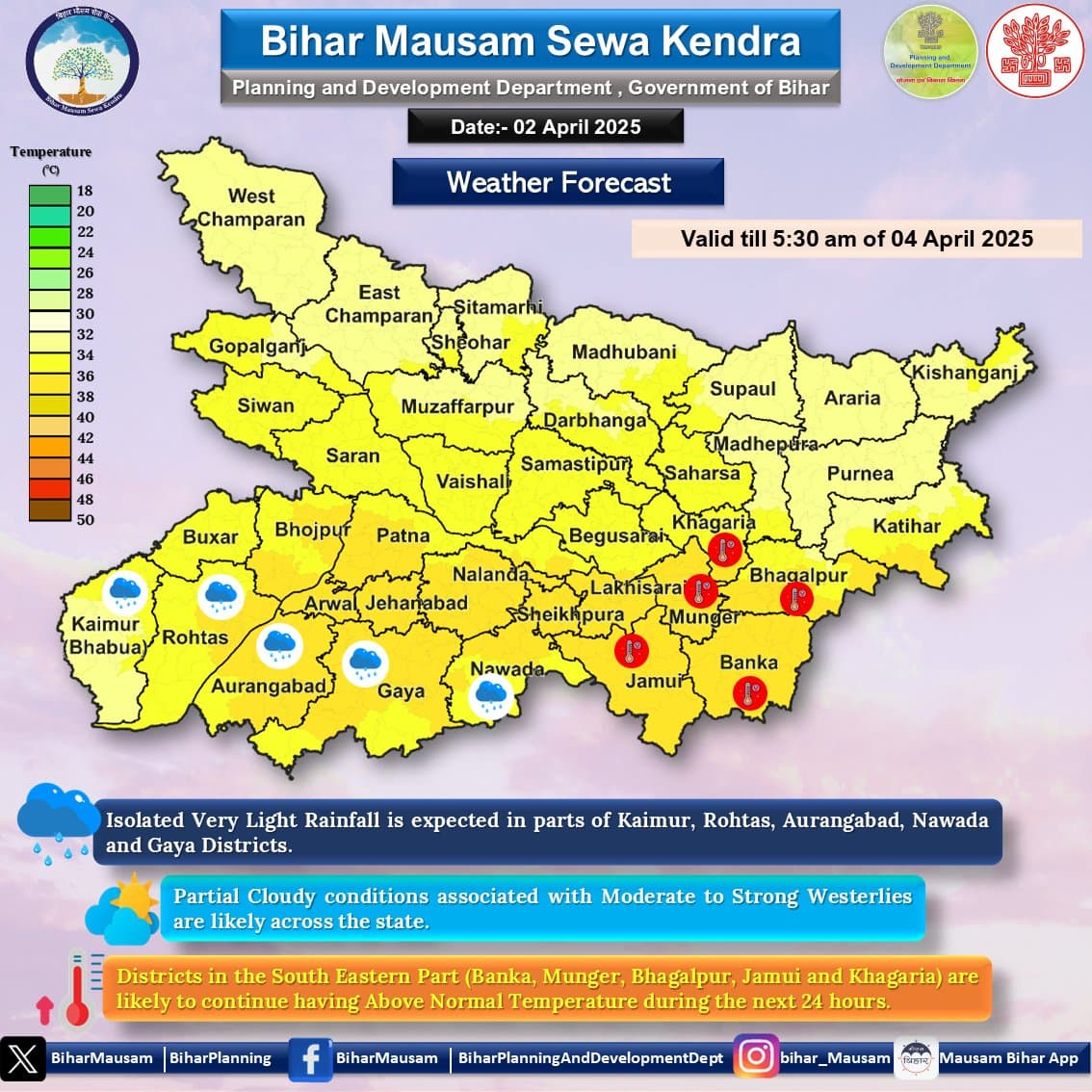 बिहार में पिछले 24 घंटे तापमान