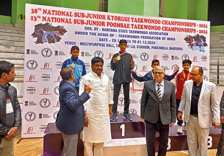 पटना. हरियाणा के पंचकुला स्थित ताऊ देवी लाल स्टेडियम में आयोजित 38वीं राष्ट्रीय सब जूनियर कयोरुगी और 13वीं राष्ट्रीय सब जूनियर पूमसे ताइक्वांडो चैंपियनशिप के कयोरुगी इवेंट में बिहार के खिलाड़ियों एक स्वर्ण समेत चार पदक जीते. बिहार ताइक्वांडो संघ के संयुक्त सचिव समता राही ने बताया कि नवादा के करण यादव ने 32 से 35 किलोग्राम भार वर्ग में स्वर्ण पदक जीता. शेखपुरा के मानव कुमार ने 38 से 41 किलोग्राम भार वर्ग और आयुष राज वर्मा ने 41 से 44 किलोग्राम भार वर्ग में रजत पदक जीत कर बिहार का नाम रोशन किया. 35 से 38 किलोग्राम भार वर्ग में शेखपुरा के इशु कुमार ने कांस्य पदक जीता. इस प्रतियोगिता में पदक जीतने वाले खिलाड़ियों को बिहार ताइक्वांडो संघ की अध्यक्ष शशिबाला भदानी, महासचिव राजेश कुमार साहू, उपाध्यक्ष बीरेंद्र कुमार, नन्दू कुमार, कोषाध्यक्ष मनीष चन्द्र रॉय, पटना साई सेंटर के प्रभारी सी सोमेश्वर राव ने बधाई दी.