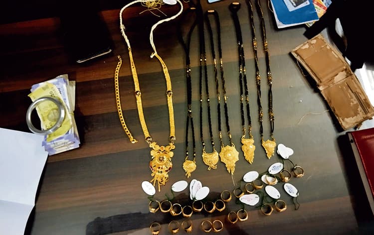 एसटीएफ की टीम ने आरोपियों के पास से जो सामान बरामद किये हैं, उनमें सोने की 23 अंगूठियां, सोने के छह मंगलसूत्र, सोने का एक ब्रेसलेट, 13,820 रुपये, तीन मोबाइल फोन और एक स्विफ्ट डिजायर कार बरामद की है.10 मिनट में लूट लिये थे पांच करोड़ के गहने