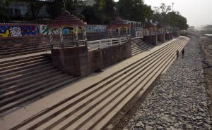 महेंद्रू घाट के पास हो रही बोल्डर पीचिंग