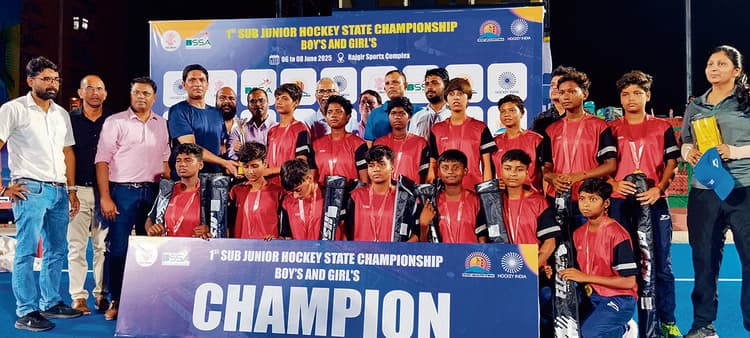 पटना. हॉकी एसोसिएशन ऑफ बिहार के तत्वावधान में राजगीर खेल परिसर में आयोजित प्रथम सब जूनियर हॉकी स्टेट चैंपियनशिप के बालक और बालिका वर्ग में बिहार राज्य खेल प्राधिकरण (बीएसएसए) की टीम चैंपियन बनी. बालिका वर्ग के फाइनल में बीएसएसए ने वैशाली को 7-0 से पराजित कर खिताब जीता. वहीं, बालक वर्ग के फाइनल में बीएसएसए ने पेनाल्टी शूट आउट में पटना को 2-1 से हराया विजेता बना. मुख्य अथिति बिहार पुलिस अकादमी के उपनिदेशक अभय कुमार लाल ने खिलाड़ियों को पुरस्कृत किया. इस मौके पर हॉकी एसोसिएशन ऑफ बिहार के उपाध्यक्ष दानिश हयात खान, सचिव राणा प्रताप सिंह, बिहार ओलिंपिक संघ के कोषाध्यक्ष मुख्तार खान, बिहार हॉकी टीम के मुख्य प्रशिक्षक गेविन फरेरा, सुनील कुमार, संजय तिवारी, अजय कुमार, शशि राणा, मिन्नी कुमारी, डॉली कुमारी सहित कई लोग मौजूद रहे. मंच का संचालन प्रतियोगिता के निदेशक गौतम कुमार सिन्हा ने किया.