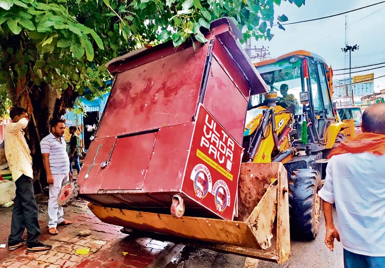 फोटो हैसंवाददाता,पटना प्रमंडलीय आयुक्त मयंक वरवड़े के निर्देश पर शहर में अलग-अलग इलाके में अतिक्रमण के खिलाफ अभियान चलाया गया. पहले दिन अभियान में सड़क पर कारोबार कर रहे दुकानदारों पर बुलडोजर चलाया गया. साथ ही सामानों की जब्ती के साथ अलग-अलग इलाके में कुल 43 हजार रुपये जुर्माना वसूल किया गया.पाटलिपुत्र अंचल में बोरिंग रोड चौराहा से बिकानेर तक चौराहा होते हुए राजापुर पुल तक अस्थायी अतिक्रमण हटाया गया. अभियान के दौरान चार बैनर हटाये गये. तीन कुल्फी ठेला व दो स्टॉल जप्त किया गया.सड़क पर अतिक्रमण कर रखे लोगों से 23 हजार जुर्माना वसूल किया गया. बांकीपुर अंचल में मैकडोवल गोलंबर से रामपुर तक अस्थायी अतिक्रमण हटाया गया. अभियान के दौरान ठेला, बांस, बल्ला जप्त किया गया.अभियान में 15 हजार जुर्माना वसूला गया.नूतन राजधानी अंचल में चिड़ियाखाना से राजाबाजार होते हुए ड्रग प्वाईंट तक सड़क पर कारोबार करनेवाले दुकानदारों पर कार्रवाई हुई. अभियान टीम को देखते ही ठेला पर कारोबार करनेवाले मुख्य सड़क छोड़ कर लिंक पथ में घुस गये.अभियान में दुकानदारों से पांच हजार रुपये जुर्माना वसूला गया.प्रमंडलीय आयुक्त ने एसएसपी को संबंधित एसडीपीओ व थानाध्यक्षों को किसी भी स्थिति में पुनः अतिक्रमण नहीं हो इस संबंध में निर्देश देने की बात कही.थानाध्यक्षों को अतिक्रमण हटाने का विवरण स्टेशन डायरी में अंकित करना है.