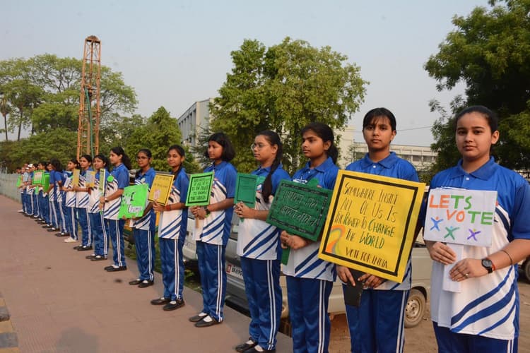 बेली रोड स्थित कार्मेल हाइस्कूल के स्पोर्ट्स क्लब की ओर से शुक्रवार को मतदाता जागरूकता अभियान का आयोजन किया गया. इस अवसर पर स्कूली छात्राओं ने मानव शृंखला बनाकर लोगों को मतदान के महत्व को बताते हुए मतदान करने के लिए जागरूक किया. इस अवसर पर स्कूल की प्राचार्या सिस्टर मृदुल एसी को छात्राओं ने प्राउड वोटर का कार्ड दिया. छात्राओं ने स्कूल के सामने पोस्टर और बैनर लेकर लोगों को वोटिंग प्रतिशत बढ़ाने की अपील की. मौके पर छात्राओं ने अभिभावकों को भी प्राउड वोटर कार्ड भी बांटे. इस अवसर पर अभिभावकों ने भी छात्राओं द्वारा बनाये गये सेल्फी स्टैंड के समीप जाकर फोटो खिंचवाया.डिस्क्लेमर: यह प्रभात खबर समाचार पत्र की ऑटोमेटेड न्यूज फीड है. इसे प्रभात खबर डॉट कॉम की टीम ने संपादित नहीं किया है