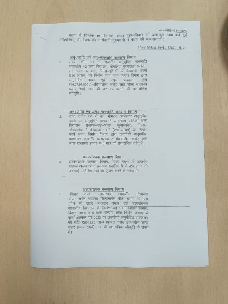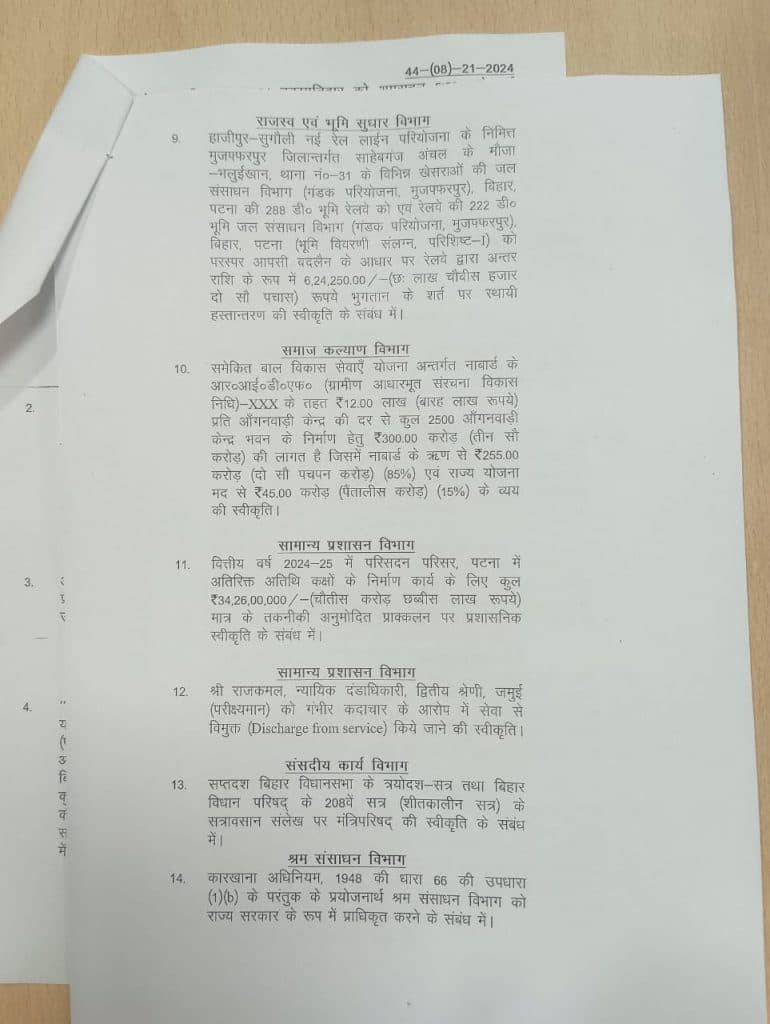 बिहार कैबिनेट की बैठक इन 43 एजेंडों पर लगी मुहर