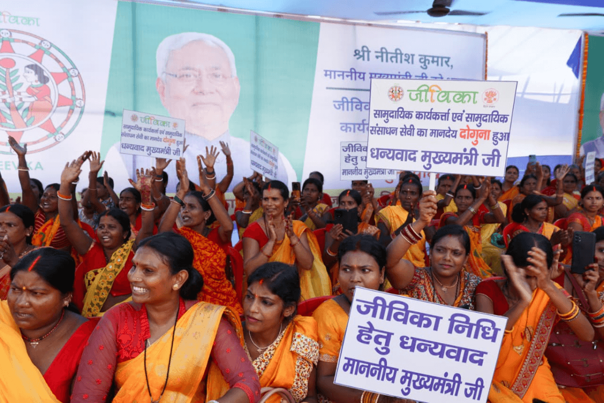 सीएम नीतीश के कार्यक्रम में पहुंची महिलाओं ने किया सबको अट्रैक्ट, हाथों में पोस्टर लेकर क्या बोलीं?