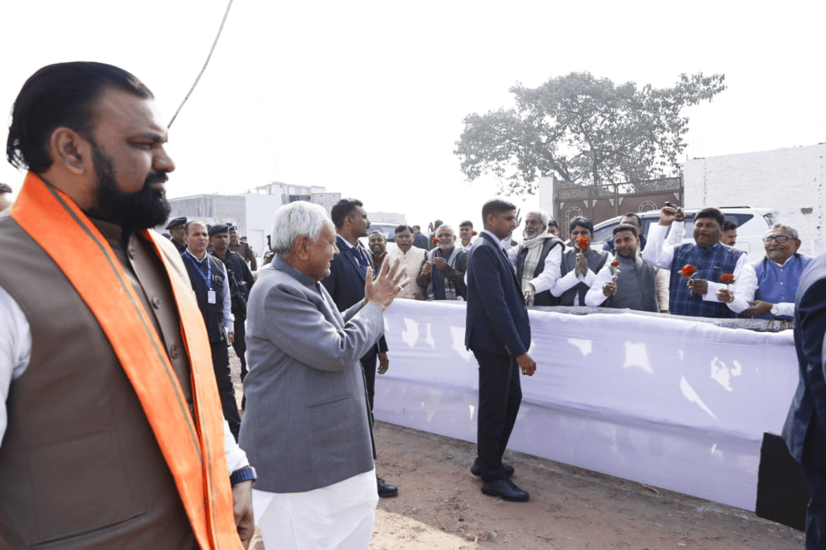 CM Nitish Kumar: मुख्यमंत्री नीतीश कुमार की समृद्धि यात्रा आज मुजफ्फरपुर जिले में पहुंची. यहां सीएम नीतीश के साथ उपमुख्यमंत्री सम्राट चौधरी और विजय कुमार सिन्हा, विजय चौधरी और रामकृपाल यादव भी मौजूद रहे. सीएम नीतीश के स्वागत में कई नेता हाथ में गुलाब का फूल लेकर खड़े थे.