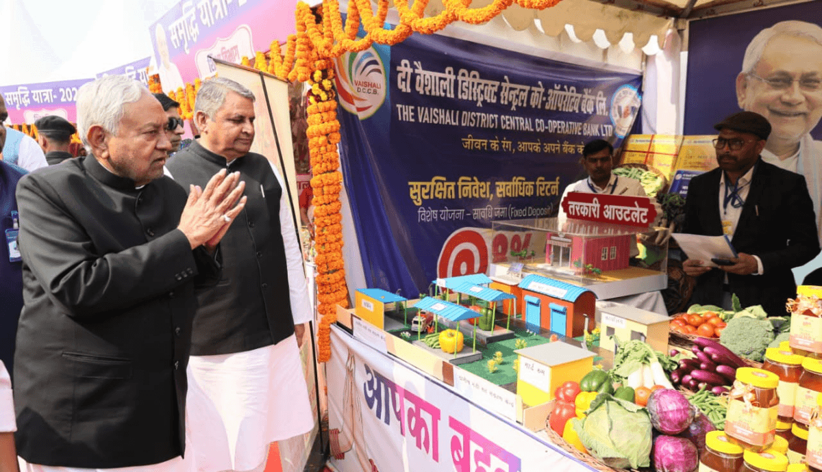 CM Nitish Yatra: मुख्यमंत्री नीतीश कुमार की समृद्धि यात्रा आज वैशाली जिले में पहुंची. जिले को उन्होंने करोड़ों रुपए की सौगात दी. इसके साथ ही राजकीय मेडिकल कॉलेज का उद्घाटन भी किया. इसके अलावा सीएम नीतीश ने अलग-अलग विभागों के स्टॉल का इंस्पेक्शन किया.