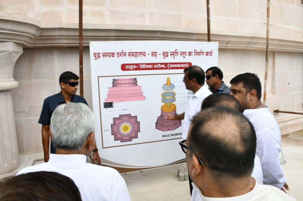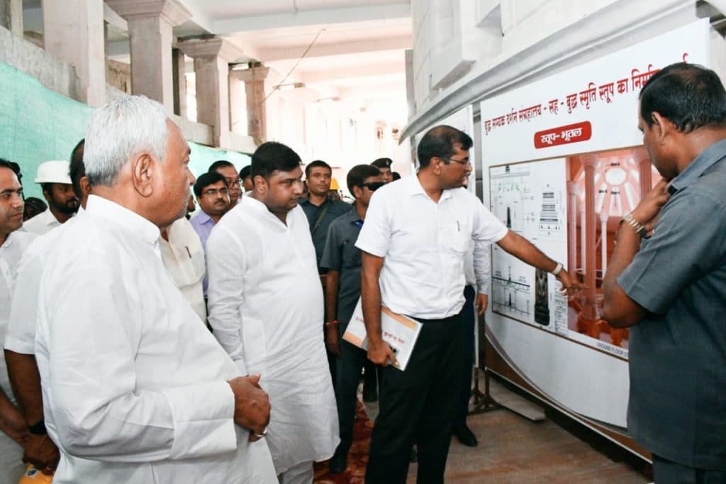 मुख्यमंत्री नीतीश कुमार ने बुद्ध स्तूप के भूतल एवं प्रथम तल का निरीक्षण कर निर्माण कार्य की जानकारी ली. उन्होंने पुस्तकालय एवं ध्यान कक्ष का निरीक्षण कर वहां की व्यवस्था की जानकारी ली. निरीक्षण के दौरान भवन निर्माण विभाग के सचिव कुमार रवि ने मुख्यमंत्री को बुद्ध सम्यक दर्शन संग्रहालय एवं बुद्ध स्मृति स्तूप के निर्माण कार्य की प्रगति की अद्यतन जानकारी दी. मुख्यमंत्री ने विजिटर सेंटर स्थित सम्मेलन कक्ष में बुद्ध सम्यक दर्शन संग्रहालय-सह-बुद्ध स्मृति स्तूप परियोजना से संबंधित समीक्षा बैठक की.