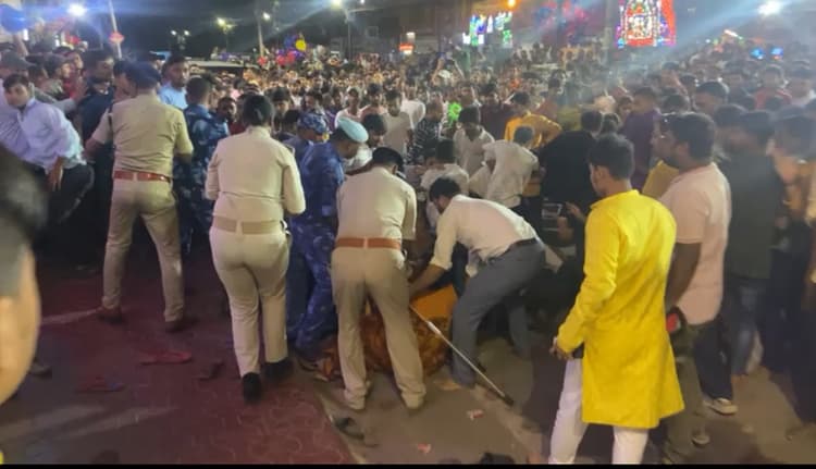 श्रद्धालुओं की भीड़ के सामने कम पड़ गयी पुलिस