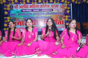 श्रीअरविंद महिला कॉलेज में सोमवार पाटलिपुत्र विश्वविद्यालय के सहयोग में इंटर-कॉलेज सांस्कृतिक प्रतियोगिता 2025 के तहत छात्रा वर्ग संगीत प्रतियोगिता का आयोजन किया गया.