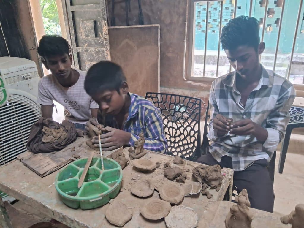 किलकारी के बच्चे चाक चलाकर तैयार कर रहे दीप