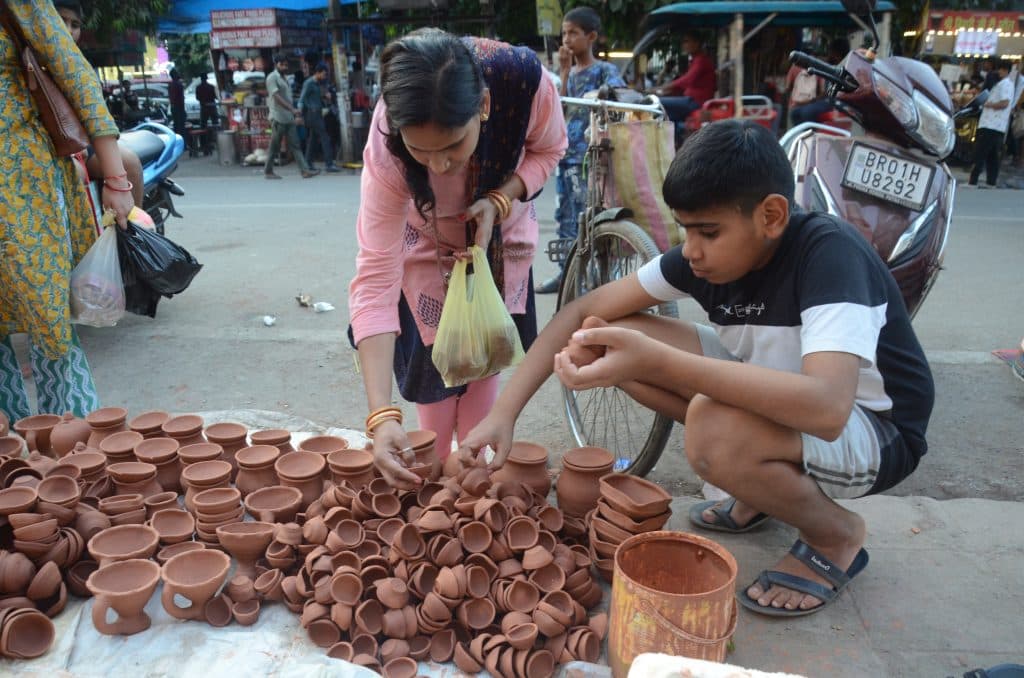 दीपोत्सव को लेकर पटना का बाजार गुलजार है. बुधवार की देर रात तक लोगों ने खरीदारी की. धनतेरस के दूसरे दिन लोगों ने लावा-फरही व चीनी की मिठाई, बुंदिया व लड्डू की भी खूब बिक्री जमकर हुई. इसके अलावा लक्ष्मी-गणेश की मिट्टी की मूर्ति, आकर्षक दीये, टेराकोटा के खिलौने व रंग-बिरंगी मोमबत्ती की भी खरीदारी लोगों ने की. कदमकुआं, नाला रोड, चिरैयाटाड़, कंकड़बाग, मीठापुर, ठाकुरबाड़ी रोड, न्यू मार्केट, बेली रोड, कुर्जी, दीघा, राजीव नगर, बोरिंग रोड, पटेलनगर, पाटलिपुत्र कालोनी सहित इलाके में देर रात तक चहल-पहल रही.