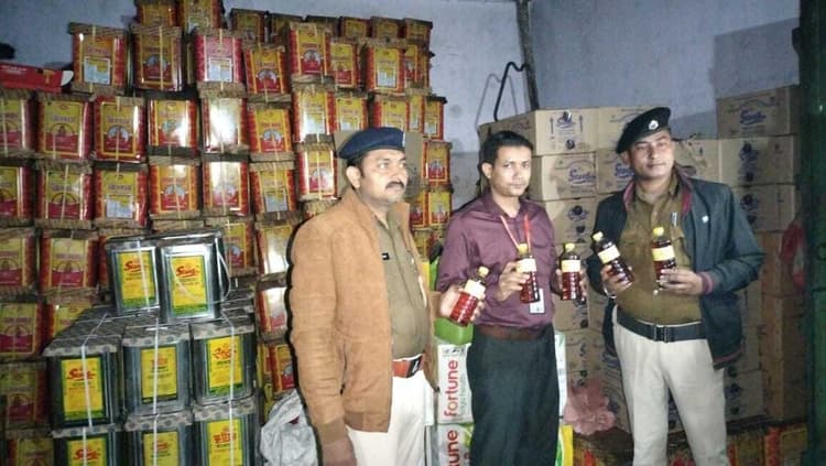 पटना सिटी. मालसलामी थाना पुलिस ने मंसूरगंज मंडी में छापेमारी कर ब्रांडेड कंपनी से मिलता खाद्य तेल व रिफाइन जब्त किया है. पुलिस ने बताया कि वरीय पुलिस अधीक्षक राजीव मिश्रा के निर्देश पर कंपनी के प्रतिनिधि टोटन चक्रवर्ती के साथ छापेमारी की गयी. इस मामले में कारोबारी को हिरासत में लिया गया है. पुलिस ने बताया कि जब्त खाद्य तेल प्रकरण में जांच की जा रही है. कंपनी के प्रतिनिधि का दावा है कि जब्त खाद्य तेल नकली है. दूसरी ओर कंपनी के प्रतिनिधि का कहना है कि ब्रांड के नाम पर नकली तेल का निर्माण कर ब्रांडेड कंपनी के डिब्बे में पैक कर बाजारों में आपूर्ति की जा रही है. जब्त की गयी खाद्य तेल की अनुमानित कीमत एक करोड़ रुपये के आसपास हो सकती है. दरअसल कंपनी के प्रतिनिधि ने एसएसपी से शिकायत की थी. इसके बाद छापेमारी की गयी. दारोगा संजय कुमार ने कहा कि पुलिस हिरासत में लिए गये संचालक संजय कुमार से पूछताछ कर रही है. पुलिस ने बताया कि जांच पड़ताल कर कापी राइट एक्ट के तहत मामला दर्ज किया जायेगा.