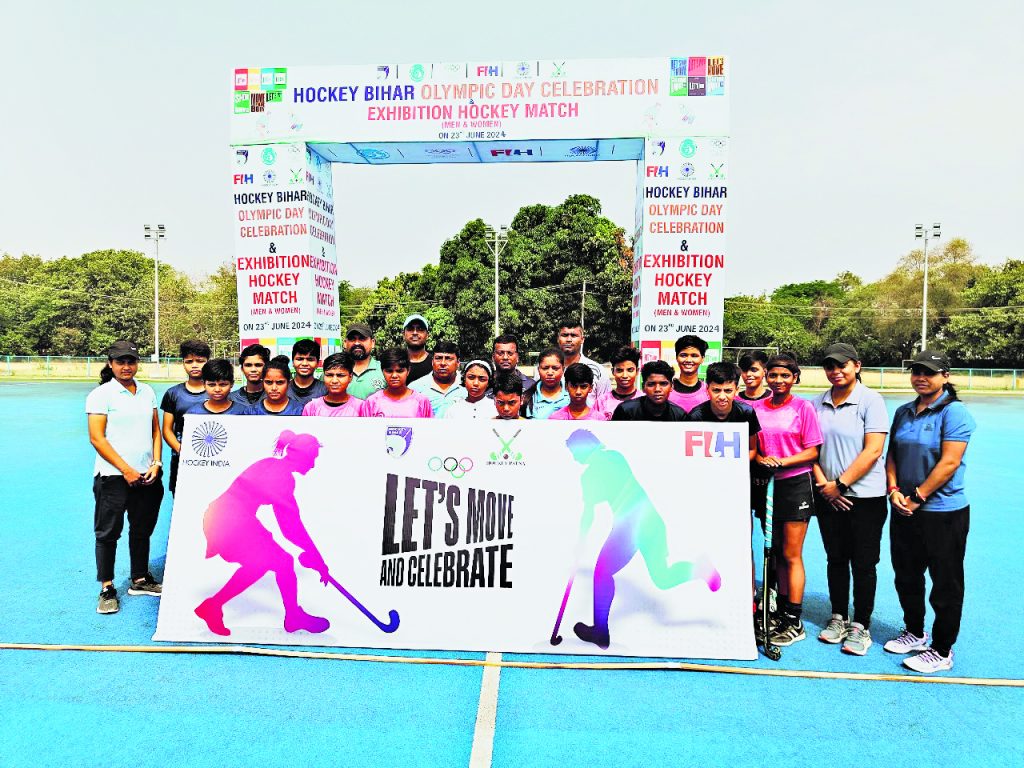 ओलिंपिक दिवस के मौके पर बीआरसी दानापुर स्थित डगूं-डूंग स्टेडियम में रविवार को हॉकी बिहार के तत्वावधान में सब जूनियर 5ए साइड महिला और पुरुष हॉकी मैच का आयोजन किया गया. पहला मैच एक्लव्य सेंटर, पटना और हॉकी पटना के बीच खेला गया. महिला वर्ग में एक्लव्य सेंटर ने हॉकी पटना को 2-0 से पराजित किया.