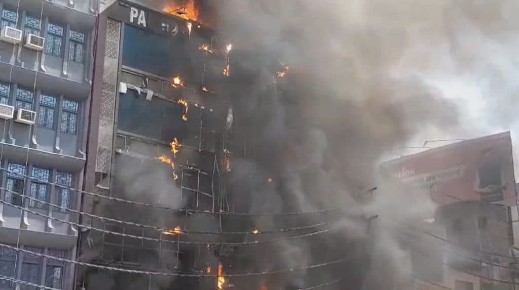 फोटो क्रेडिट: जय प्रकाश, संजीव व सुबोध नंदन: पटना जंक्शन से सटे होटल पाल में गुरुवार को भीषण आग लग गयी. आग ने देखते ही देखते विकराल रूप धारण कर लिया और पूरे होटल को अपनी जद में ले लिया. बहुमंजिले इस होटल में जब भीषण आग लगी तो अफरा-तफरी की स्थिति बन गयी. आनन-फानन में प्रशासन और अग्निशमन विभाग की टीम मौके पर पहुंची और आग पर काबू पाने की जद्दोजहद शुरू हुई. घंटों मशक्कत के बाद आग पर काबू पाया गया. हालांकि इस होटल के अंदर फंसे 6 लोगों की मौत की पुष्टि अभी तक हो चुकी है.
