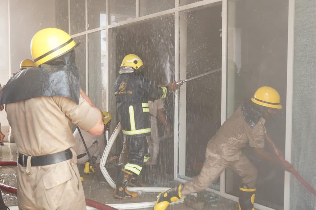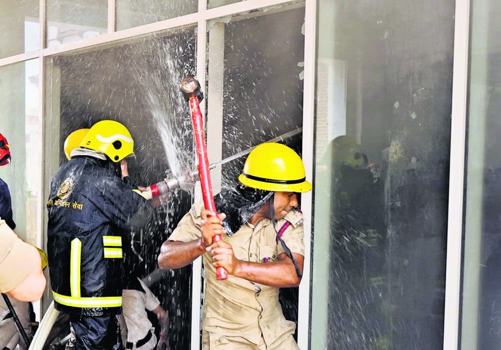 शीशा तोड़ने के दौरान दो दमकलकर्मी जख्मी