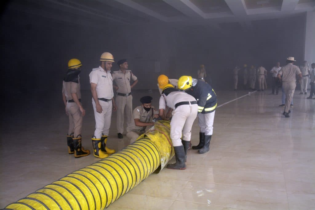 वहीं तुरंत लोदीपुर फायर स्टेशन से दमकल की छोटी-बड़ी 25 गाड़ियां पहुंच गयीं. गैलरी के पास सीधे गाड़ी नहीं जाने के कारण दमकल कर्मियों ने पाइप जोड़कर गैलरी तक पानी को पहुंचाया. इस भवन में गंगा गैलरी और पाटलि गैलरी का काम चल रहा था. आग लगने की वजह से अफरा-तफरी का माहौल हो गया. धुआं इतना ज्यादा था कि जितने भी वहां काम करने वाले लोग थे, सभी खुले में आ गये.