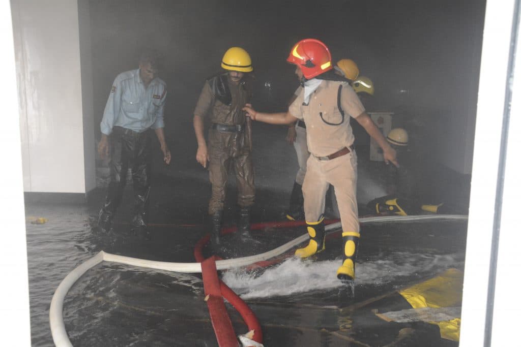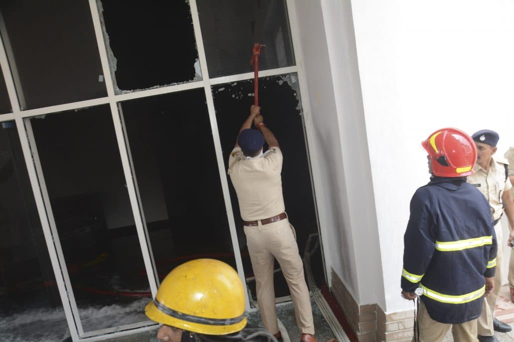 वहां काम करनेवाले लोगों ने बताया कि आग सुबह 10:45 के लगभग लगी थी. वहीं वहां मौजूद अधिकारियों ने बताया कि उन्हें आग लगने की सूचना 11:30 बजे मिली जिसके बाद फायर ब्रिगेड को फोन किया गया. पांच मिनट के अंदर दमकल गाड़ियां परिसर में आ गयी थीं. टीम तुरंत रेसक्यू के साथ आग बुझाने में लग गयी. अंदर आग की तेज लपटें उठ रही थीं और धुएं की वजह से अंदर कुछ भी नजर नहीं आ रहा था. ऐसे में डेढ़ घंटे की मशक्कत के बाद आग पर काबू पाया जा सका. धुएं में दम घुटने के कारण एक दमकल कर्मी की तबीयत भी बिगड़ गयी. एक्जिट के लिए बने दरवाजे के एक हिस्से को तोड़ कर पहले दमकल की टीम अंदर गयी, लेकिन धुआं अंदर इतना ज्यादा था कि दरवाजे के शीशे को तोड़ा गया. शीशा तोड़ने के क्रम में दो कर्मी जख्मी हो गये.