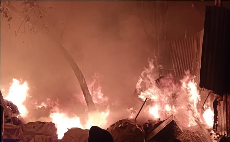 दो घंटे की मशक्कत के बाद के बाद दमकल ने आग पर पाया काबू