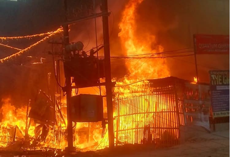 Fire in Patna: पटना. बिहार की राजधानी पटना में सुबह-सुबह अगलगी की बड़ी घटना हुई है. पटना से सटे दानापुर के रूपसपुर थाना क्षेत्र के गोला रोड मोड़ के पास गुरुवार की सुबह एक चाय दुकान में सिलेंडर रिसाव से आग लग गई. इस अगलगी में आसपास की चार दुकानें जलकर राख हो गई हैं. आग लगने के बाद वहां अफरा-तफरी की स्थिति बन गई. इस अगलगी की जो तस्वीर सामने आई है उसमें नजर आ रहा है कि आग की लपटें काफी उपर उठ रही हैं. काफी दूर से ही आसमान में उठते काले धुएं को देखा जा सकता है. बताया जा रहा है कि कड़ी मशक्कत के बाद इस आग पर काबू पाया जा सका है.