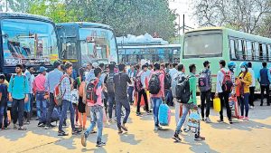 बस स्टैंड में भी पटना से अपने-अपने घरों को जाने वाले लोगों की संख्या बढ़ने के कारण बुधवार को यात्रियों की अधिक भीड़ दिखाई दी. बैरिया बस स्टैंड से अधिक भीड़ इस दौरान बांकीपुर बस स्टैंड में दिखाई दी. चूंकि बैरिया से जाने वाले कई बस यात्री मसौढ़ी मोड़ और जीरो माइल से ही बस पकड़कर निकल ले रहे थे. लिहाजा बस स्टैंड के भीतर बहुत यात्री नहीं थे, लेकिन बांकीपुर बस स्टैंड में बड़ी संख्या में बस यात्री दिखे. खास कर सुबह में इनकी बहुत अधिक भीड़ थी. कुछ लोगों को बस में सीट नहीं मिल पा रही थी और इसके लिए उन्हें अगली बस के आने का इंतजार करना पड़ रहा था.