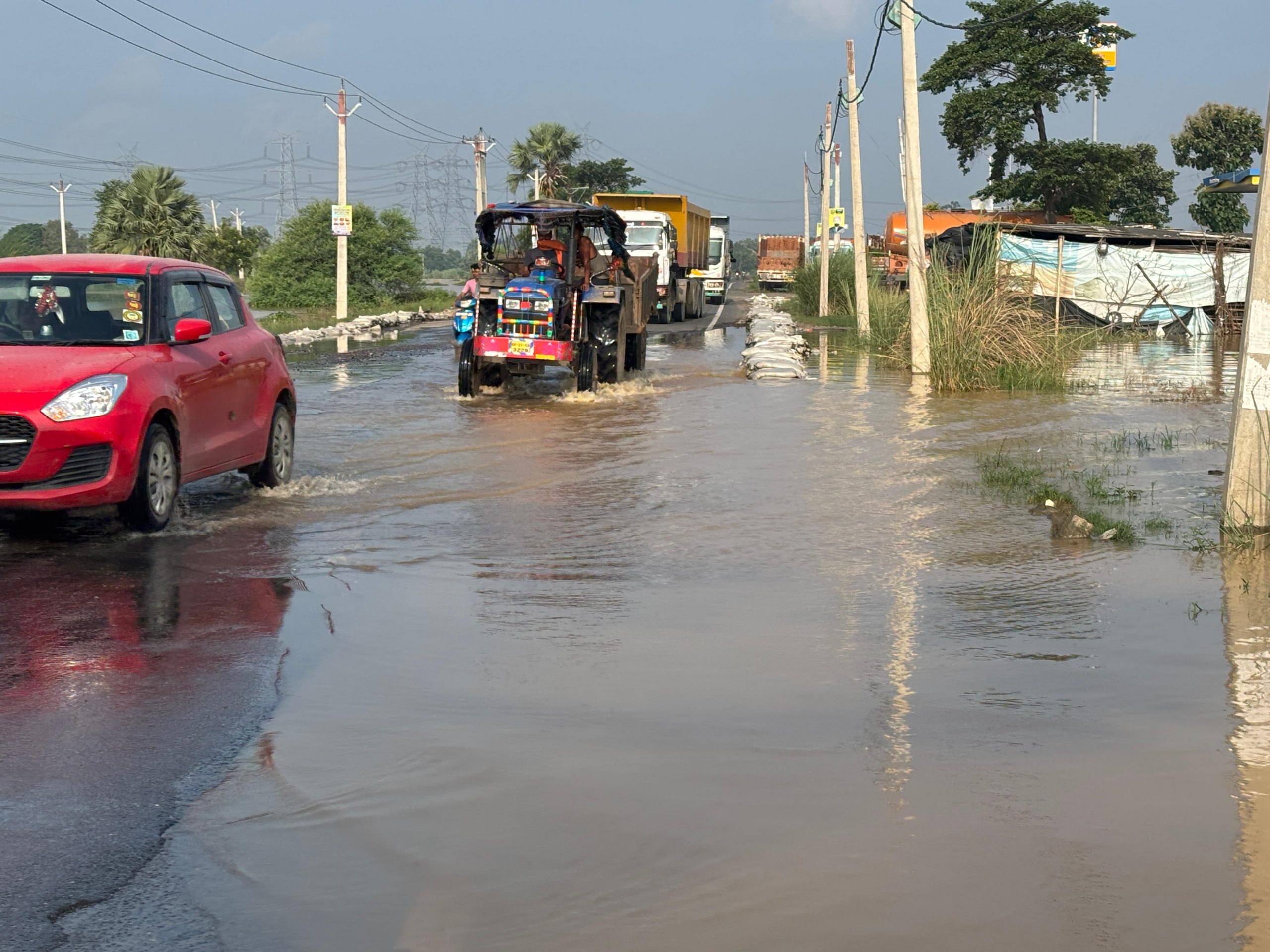 दनियावां . प्रखंड की दो पंचायतों खरभाईया और सिगरियावां समेत घोनपुरा के कई गांव बाढ़ की चपेट में हैं. साथ ही सैकड़ों एकड़ धान की फसल डूब गयी. उसके बाद मंगलवार की सुबह दनियावां-बिहारशरीफ एनएच 30ए पर दनियावां के होरिल बिगहा गांव के पास एनएच पर पानी चढ़ गया. हालांकि गाड़िया का परिचालन अभी जारी है. जलसंसाधन विभाग के अधिकारी ही सड़क के दोनों ओर बोरा लगा खतरे के निशान से लोगों को सावधान करा रहे हैं. प्रखंड के जीवनचक और चकरज्जा गांव के बीच महत्माइन नदी का टूटा तटबंध तीसरे दिन भी नहीं बांधा जा सका. तटबंध टूटने से राजाचक और धोरमन खंदा के बीच प्रधानमंत्री ग्रामीण सड़क योजना से वर्षों पूर्व एक पुल बना था जो नदी के तेज धारा से टूट गया. जिससे चक्रज्जा से जीवनचक जाने वाली सड़क में खांड हो गया. इसके बाद सरथुआ पारी खंदा की ढलाई सड़क और एमन बिगहा का एक पुराना जमींदारी बांध और घोनपुरा में एक तटबंध कट गया, जिससे सरथुआ मिल्की और ऐमन बिगहा और गोनपुरा गांव में सभी घरों में पानी घुस गया है. जलसंसाधन विभाग के कार्यपालक अभियंता सुमन सौरव और एसडीओ जगदीशचंद्र भारती व अरविंद कुमार यादव अपनी टीम के साथ टूटे बांध की मरम्मत का जायजा लिया. इस बाढ़ से लगभग छह गांवों के लगभग पांच हजार की आबादी इस चपेट में आ गयी है. ऐमन विगहा के प्राथमिक विद्यालय में चार से पांच फिट पानी जमा है. इससे बच्चों की पढ़ाई बाधित है. मदाड़ी चक प्राथमिक विद्यालय और मकसूदपुर प्राथमिक विद्यालय और घोनपुरा प्राथमिक विद्यालय, होरिल बिगहा प्राथमिक विद्यालय में भी पानी घुसा हुआ है. सभी स्कूलों को बगल के गांव के स्कूलों में टैग कर बच्चों को पढ़ाया जा रहा है.