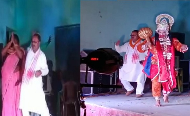 भागवत कथा के कार्यक्रम में कई कलाकार अलग-अलग देवी देवताओं की भूमिका में मंच पर कला दिखा रहे थे. इस दौरान गोपाल मंडल भी मंच पर पहुंच गये. हनुमान के साथ डांस करने का वीडियो सोशल मीडिया पर वायरल हो रहा है. इस कार्यक्रम में गोपाल मंडल की पत्नी सविता देवी भी मौजूद थीं. विधायक ने मंच पर अपनी पत्नी के साथ भी ठुमके लगाये जिसका वीडियो भी वायरल हो रहा है.