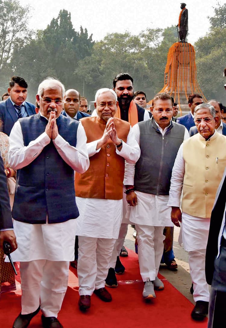 देश के प्रथम राष्ट्रपति देशरत्न डॉ राजेंद्र प्रसाद की 140वीं जयंती के अवसर पर राज्यपाल राजेन्द्र विश्वनाथ आर्लेकर, मुख्यमंत्री नीतीश कुमार ने देशरत्न डॉ राजेन्द्र प्रसाद के चित्र पर माल्यार्पण कर उन्हें नमन किया. इस राजकीय समारोह का आयोजन मंगलवार को पटना के राजेन्द्र चौक स्थित उनकी प्रतिमा स्थल पर किया गया. माल्यार्पण के बाद राज्यपाल और मुख्यमंत्री ने स्वदेशी कंबल आश्रम की चरखा कात रही महिलाओं के बीच साड़ी वितरण कर उन्हें प्रोत्साहित भी किया. राजेन्द्र चौक से राज्यपाल राजेन्द्र विश्वनाथ आर्लेकर और मुख्यमंत्री नीतीश कुमार राजेन्द्र घाट समाधि स्थल पहुंचे और वहां देशरत्न डॉ राजेन्द्र प्रसाद की समाधि पर पुष्प चक्र अर्पित कर उन्हें श्रद्धांजलि दी.
