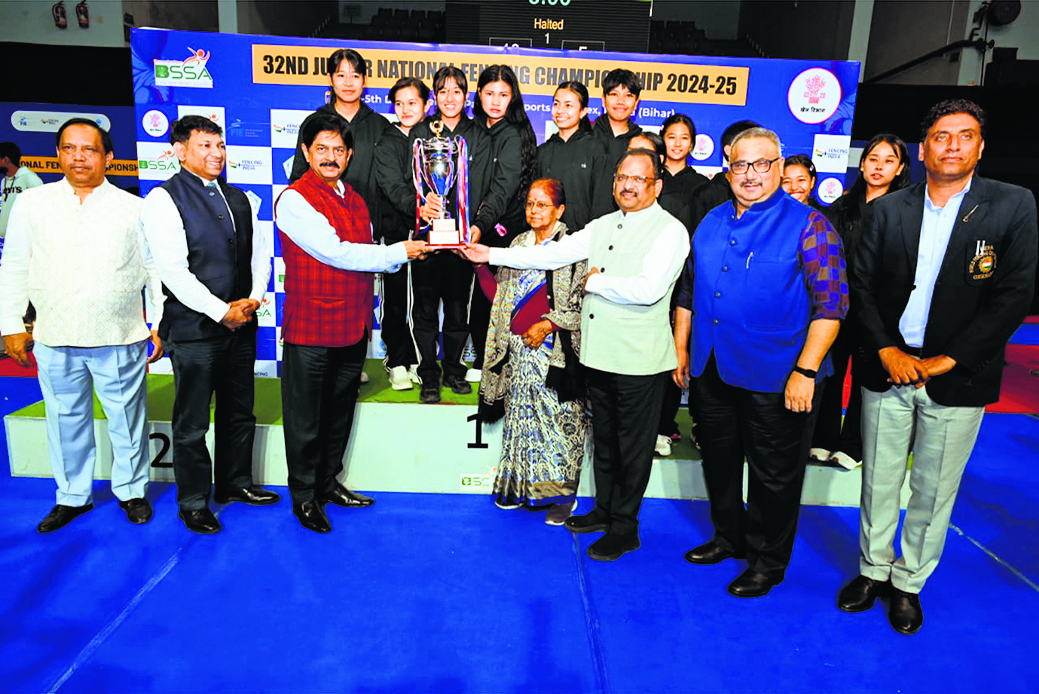 पटना. पाटलिपुत्र स्पोर्ट्स कॉम्प्लेक्स में बिहार राज्य खेल प्राधिकरण और बिहार तलवारबाजी संघ के संयुक्त तत्वाधान में आयोजित 32वीं जूनियर (अंडर-20) राष्ट्रीय तलवारबाजी प्रतियोगिता में हरियाणा की टीम ओवरऑल चैंपियन बनी़ पुलिस महानिदेशक आलोक राज, बिहार राज्य खेल प्राधिकरण के महानिदेशक रविंद्रन शंकरन, बिहार सरकार के सलाहकार सीके अनिल, पटना की मेयर सीता साहू, भारतीय तलवारबाजी संघ के महासचिव राजीव मेहता, आयोजन सचिव रमाशंकर प्रसाद, झारखण्ड तलवारबाजी संघ के जय कुमार सिन्हा, अशोक दुधारे ने पदक विजेता खिलाड़ियों को पुरस्कृत किया़ इपी इंडिविजुअल के बालिका वर्ग में हरियाणा की अन्नूप्रिया ने स्वर्ण, तेलंगाना की नाजिया शेख ने रजत, महाराष्ट्र की माही अर्द्वाद और हरियाणा की प्राची लोहान ने कांस्य पदक जीता़ सेबर इंडिविजुअल के बालक वर्ग में मणिपुर के मोरांबा ने स्वर्ण, तमिलनाडु के अरलीन ने रजत, हरियाणा के अभिषेक और राजस्थान के सुमित यादव ने कांस्य पदक हासिल किया़ फॉयल इंडिविजुअल में हरियाणा के सचिन ने स्वर्ण, एसएससीबी के संसम हिमेश सिंह ने रजत, मणिपुर के ओणम दिनेश व कंगबम दिनेश ने कांस्य पदक जीता़ सेबर इंडिविजुअल के बालिका वर्ग में हरियाणा की आखिरी ने स्वर्ण, सारिका ने रजत, गुजरात की ऋतु प्रजापति और मणिपुर की लैशराम अबी ने कांस्य पदक जीता. इपी इंडिविजुअल के बालक वर्ग में पंजाब के बलीराम जोशी को स्वर्ण, तेलंगाना के लोकेश बेमानी को रजत, हरियाणा के गौरव और पंजाब के शौर्य अश्विनी को कांस्य पदक मिला. फॉयल इंडिविजुअल के बालिका वर्ग में छत्तीसगढ़ की दीपांशी ने स्वर्ण, हरियाणा की प्राची ने रजत, मणिपुर की ताखेलम्बम मंगेलीबी और तमिलनाडु की आशिता एस जॉयस ने कांस्य पदक हासिल किया.