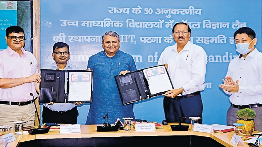 आइआइटी पटना प्रदेश के 50 स्कूलों में भौतिकी और रसायन की मॉडल लैब स्थापित करेगा. प्रथम चरण में पटना जिले के सात स्कूलों में यह लैब स्थापित होगी. लैब मई से सितंबर के बीच बनेगी. शिक्षा मंत्री विजय कुमार चौधरी की मौजूदगी में नया सचिवालय स्थित स्थित मदन मोहन झा स्मृति सभागार में शुक्रवार को आयोजित कार्यक्रम में आइआइटी पटना के निदेशक प्रो त्रिलोक नाथ सिंह और बीइपी के निदेशक श्रीकांत शास्त्री ने एमओयू पर हस्ताक्षर किये.