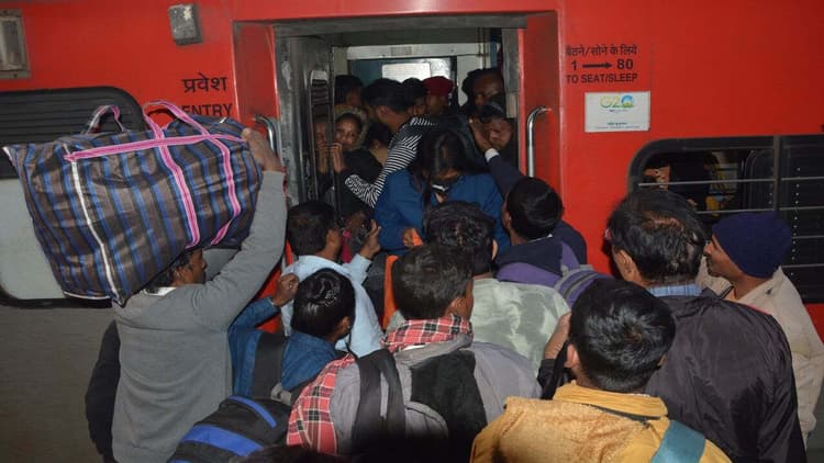सबसे अधिक भीड़ दिल्ली जाने वाली ट्रेनों में दिख रही है. बुधवार को श्रमजीवी एक्सप्रेस प्लेटफॉर्म नंबर चार पर 10:30 बजे आयी. ट्रेन में इतनी अधिक भीड़ थी कि कुछ यात्री चढ़ नहीं पाये.