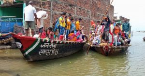 बाढ़ के पानी में दौड़ रही राजधानी-जनता एक्सप्रेस, नाव में यात्रा के लिए रेलवे की तरह लेनी पड़ती है वेटिंग टिकट