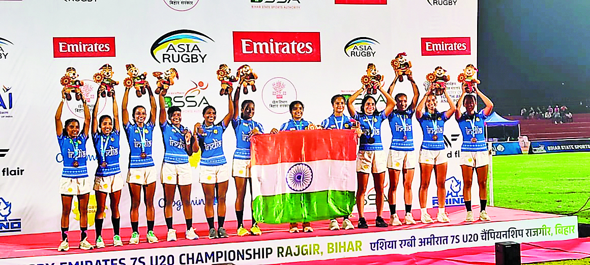 राजगीर. राजगीर खेल परिसर ने रविवार को एशिया रग्बी अंडर-20 चैंपियनशिप का समापन हुआ. भारत की अंडर-20 महिला टीम ने शानदार प्रदर्शन करते हुए कांस्य पदक पर कब्जा किया. मेजबान टीम ने खेले गये तीसरे स्थान के मुकाबले में उज्बेकिस्तान को हराकर यह ऐतिहासिक उपलब्धि हासिल की. पूल चरण में उम्दा प्रदर्शन के बाद भारत ने सेमीफाइनल में चीन का सामना किया, जहां कड़े संघर्ष के बावजूद टीम 7-28 से हार गयी. कांस्य पदक मुकाबले में भारत ने शुरुआत से ही दबदबा बनाया. भूमिका ने पहला ट्राई कर स्कोर 7-0 किया, जिसके बाद गुड़िया कुमारी ने बढ़त 12-0 कर दी. उज्बेकिस्तान ने एक ट्राई से वापसी की कोशिश की, लेकिन घरेलू दर्शकों के उत्साह से प्रेरित भारतीय रक्षण ने जीत पक्की कर दी. पुरुष वर्ग में हांगकांग ने और महिला वर्ग में चीन ने खिताब पर कब्जा किया. फाइनल मुकाबले में हांगकांग ने श्रीलंका को 33-0 से पराजित किया. महिला वर्ग का फाइनल मैच चीन और हांगकांग के बीच खेला गया. कड़े मुकाबले में चीन ने हांगकांग को आठ अंकों के अंतर से पराजित किया. चीन की खिलाड़ियों ने 29 अंक और हांगकांग की खिलाड़ियोंं ने 21 अंक बनाये.