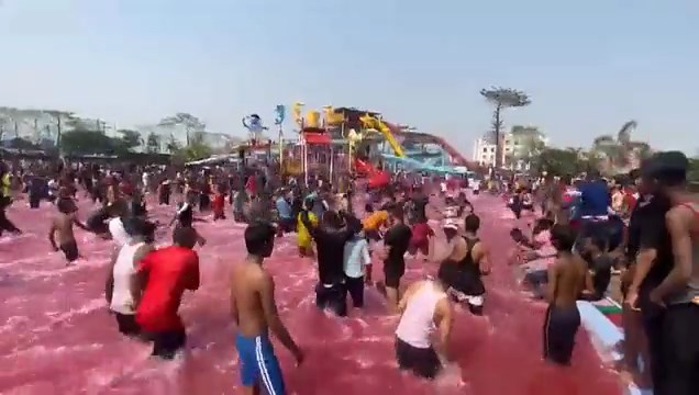 चप्पल से पट गया वाटर पार्क दरअसल होली की मस्ती के दौरान एक लड़के ने दोस्त की चप्पल पानी में फेक दी. जवाब में उसके दोस्त ने भी उसकी चप्पल पानी में फेकी. इसके बाद सभी एक-दूसरे की चप्पल पानी में फेकने लगे. देखते ही देखते दो गुट बंट गये और एक-दूसरे पर चप्पल फेकने लगे. वाटर पार्क में 1500 से अधिक लड़के-लड़की मौजूद थे. इस घटना को रोकने की आयोजको ने खूब कोशिश की. लोगों को माइक के जरिये कहा गया, पर लोग नहीं माने. बाद में हवाई फायरिंग कर मामले को शांत करा दिया गया.