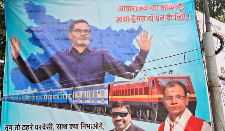 बता दें कि जदयू के पंकज सिंह और धीरज कुमार सिंह ने इनकम टैक्स चौराहे पर पोस्टर लगवाया गया है. पोस्टर के जरिए प्रशांत किशोर पर तंज कसा गया है. पोस्टर में प्रशांत किशोर की बड़ी सी तस्वीर है और उसके ठीक नीचे एक ट्रेन की भी तस्वीर है. उस पर लिखा गया है आवारा हवा का झोंका हूं, आया हूं पल दो पल के लिए. तुम तो ठहरे परदेसी, साथ क्या निभाओगे, चुनावी हवा के साथ बह जाओगे.