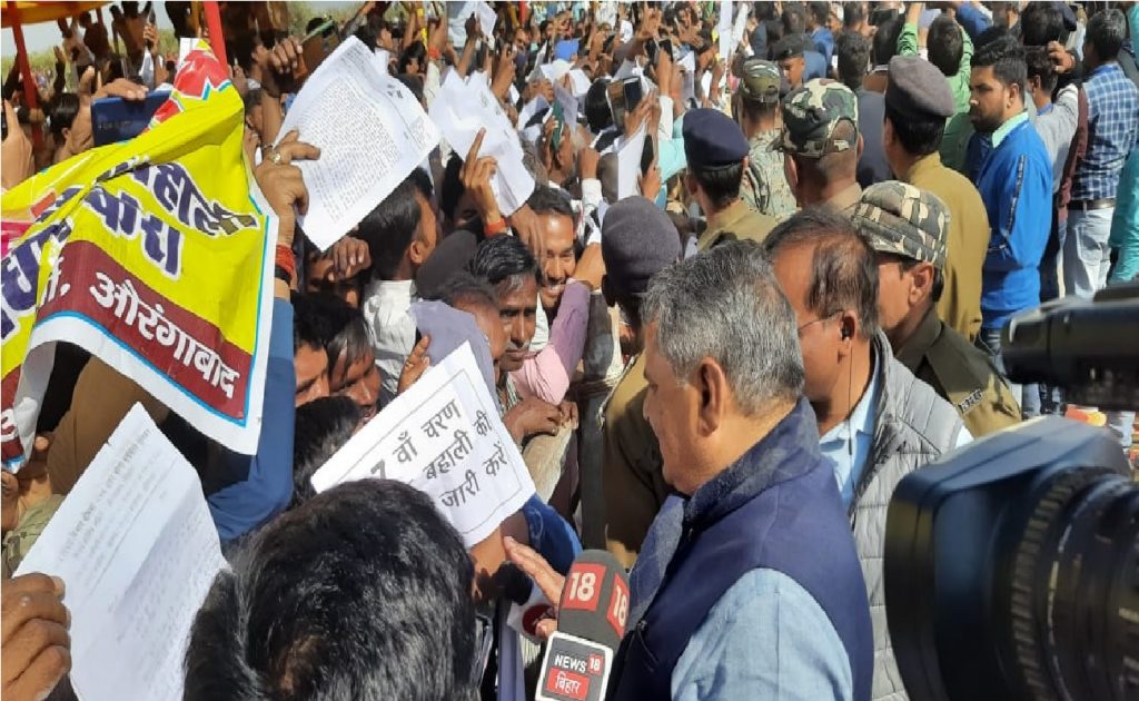 समाधान यात्रा पर सोमवार को सीएम नीतीश कुमार औरंगाबाद पहुंचे. बारुण प्रखंड के कंचनपुर गांव में पंचायत सरकार भवन का उदघाटन एवं विभिन्न विभागों द्वारा लगाये स्टॉल का निरीक्षण करने के बाद सीएम आम आवाम से मुखातिब हुए. सीएम के समक्ष लोगों ने कई मांगों रखी. शिक्षक बहाली की मांग को लेकर पहुंचे कई अभ्यर्थियों ने सीएम को कहा कि सर, नौकरी बिना बियाह नहीं हो रहा है. अगुआ घुम के चल जा रहा है. बहुत समय से इंतजार कर रहे है.सातवां चरण वाला बहाली जल्दी कराइये. तबे बियाह होगा.