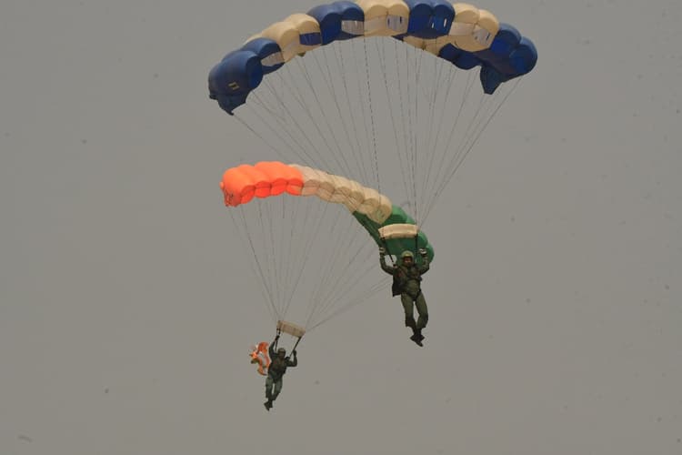 जेपी गंगा पथ पर मंगलवार को हुए एयर शो की फुल ड्रेस रिहर्सल के दौरान भारतीय वायुसेना की आकाशगंगा टीम के पैराजंपर्स ने 1500 फुट की ऊंचाई से तिरंगा लेकर छलांग लगायी. सुबह 10:05 बजे से शुरू हुए इस प्रदर्शन में 5-5 मिनट के अंतराल पर 9 पैराजंपर्स ने हवा में शानदार कलाबाजियां दिखायीं. इस दल का नेतृत्व विंग कमांडर राहुल झा ने किया, जिन्होंने बाबू वीर कुंवर सिंह के चित्र के साथ तिरंगे के साथ अवतरण किया. उनके साथ नरेश बाबू, जगदीश शरण, संदीप चौधरी, रजनीकांत, एन खाकहल, आलोक यादव, एसडीएम त्रिपाठी और विशाल वर्मा ने भी हिस्सा लिया। जैसे ही पैराजंपर्स जमीन पर उतरे, दर्शकों ने तालियों से उनका गर्मजोशी से स्वागत किया.