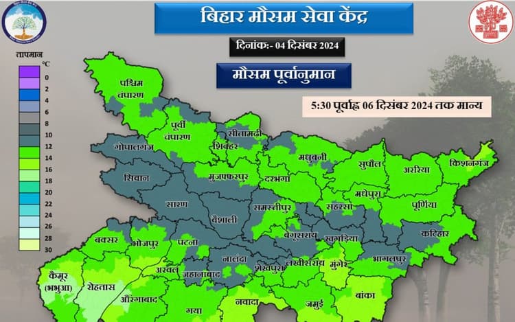 Kal Ka Mausam 5 December 2024: बिहार में कल से ठंड बढ़ने लगेगा, जिसके कारण अगले दो दिनों के बाद आपको कड़ाके की ठंड का एहसास होगा. वहीं सुबह और शाम में घने कोहरे की स्थिति भी देखने को मिलेगी. मौसम विभाग ने आने वाले अगले दो दिनों में ठिठुरन वाली ठंड को लेकर चेतावनी दी है. बिहार मौसम सेवा केंद्र के अनुसार 5 और 6 दिसंबर 2024 दिन गुरुवार-शुक्रवार की देर रात और सुबह के समय राज्य के 21 जिलों में तेज गति से पछुआ हवा चलने का पूर्वानुमान है. इस दौरान प्रदेश के अधिकांश भागों में न्यूनतम तापमान 10-14°C के बीच बने रहने की संभावना है. प्रदेश में पछुआ हवा चलने के कारण सुबह-शाम में ठिठुरन वाली ठंड का सामना करना पड़ेगा.