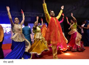 कंगन घाट पर गंगा की लहरों के बीच सुर, लय और ताल की मनोहारी समवेत धारा में गंगोत्सव की कला आरती सम्पन्न हुई. जैसे ही आरती आरंभ हुई, श्रद्धालु ‘हर-हर गंगे’ के जयघोष में मग्न हो गये. यह आयोजन सनातनी गंगा फाउंडेशन व आइडीपीटीएस द्वारा संचालित 11 दिवसीय गंगोत्सव का हिस्सा था.