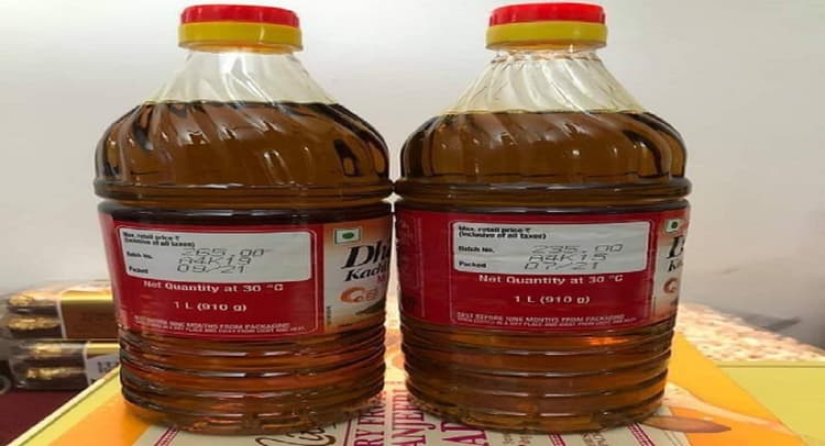 सोशल मीडिया पर सरसों तेल की दो बोतलों की तसवीरें एकसाथ वायरल हो रही है. एक ही कंपनी की दो अलग-अलग पैकिंग में 30 रुपये का अंतर दिख रहा है. जुलाई 2021 में तैयार की गई 1 लीटर वाली बोतल में सरसों तेल की कीमत 235 रुपये दिख रही है जबकि ठीक दो महीने बाद जिस बोतल की पैकिंग की गई है उसके स्टीकर में 265 रुपये दिख रहा है. यानी दो महीने के अंदर ही सरसों तेल की कीमत में 30 रुपये का उछाल आ गया है.