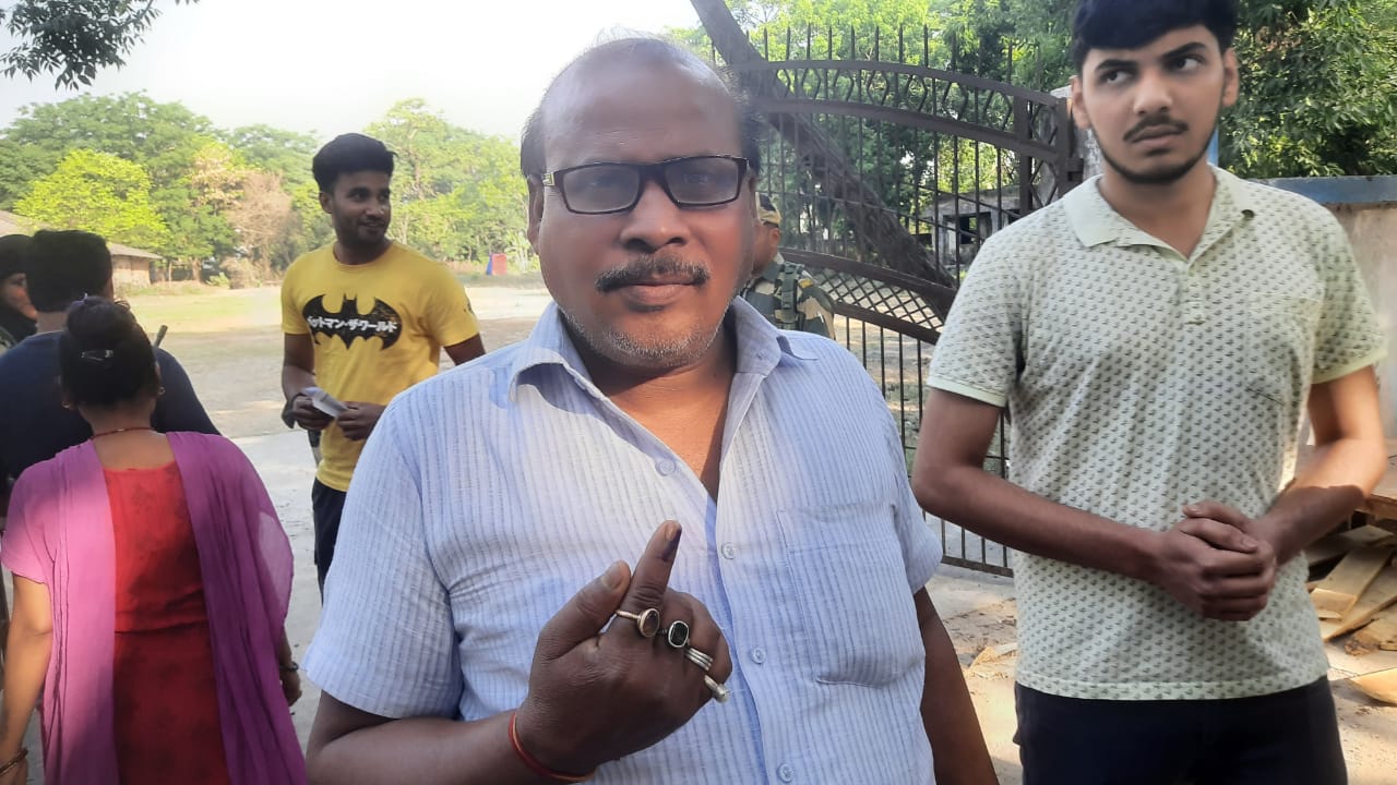 कटिहार लोकसभा क्षेत्र के बलरामपुर विधानसभा अंतर्गत बारसोई प्रखंड स्थित मतदान केंद्र संख्या 205 प्राथमिक विद्यालय करीमगंज में अपने मताधिकार का प्रयोग करते कटिहार के सांसद डॉक्टर दुलाल चंद्र गोस्वामी.