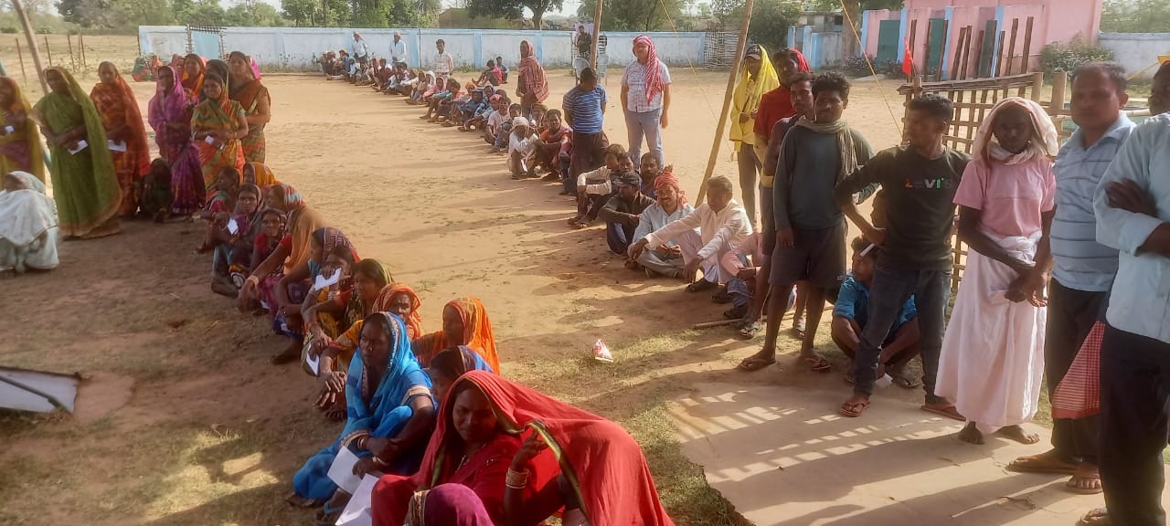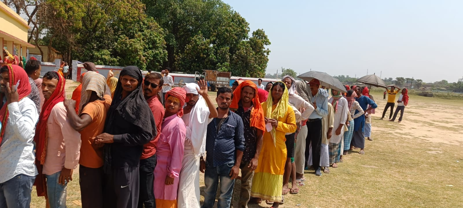 भागलपुर लोकसभा के संत उच्च विद्यालय में बूथ संख्या 69 तपती धूप में बिना टेन्ट का मतदान के लाइन में लगे मतदाता.
