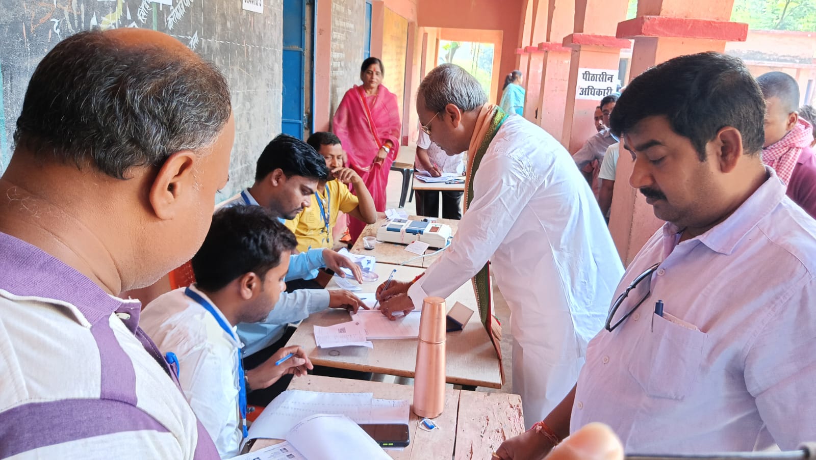 पूर्णिया के बनमनखी के स्थानीय विधायक कृष्ण कुमार ऋषि ने अपनी पत्नी के साथ मध्य विद्यालय रेसाढ़ दक्षिणी के बूथ 55 पर मतदान किया.
