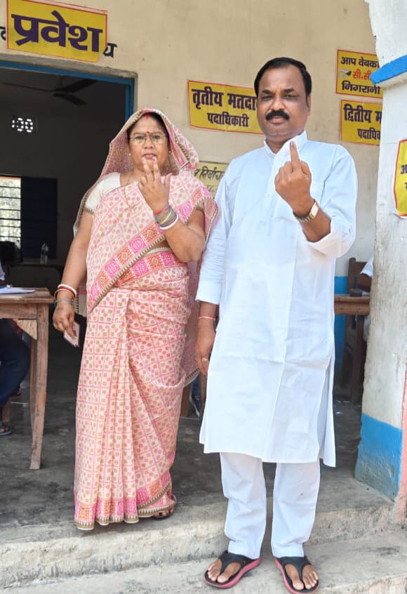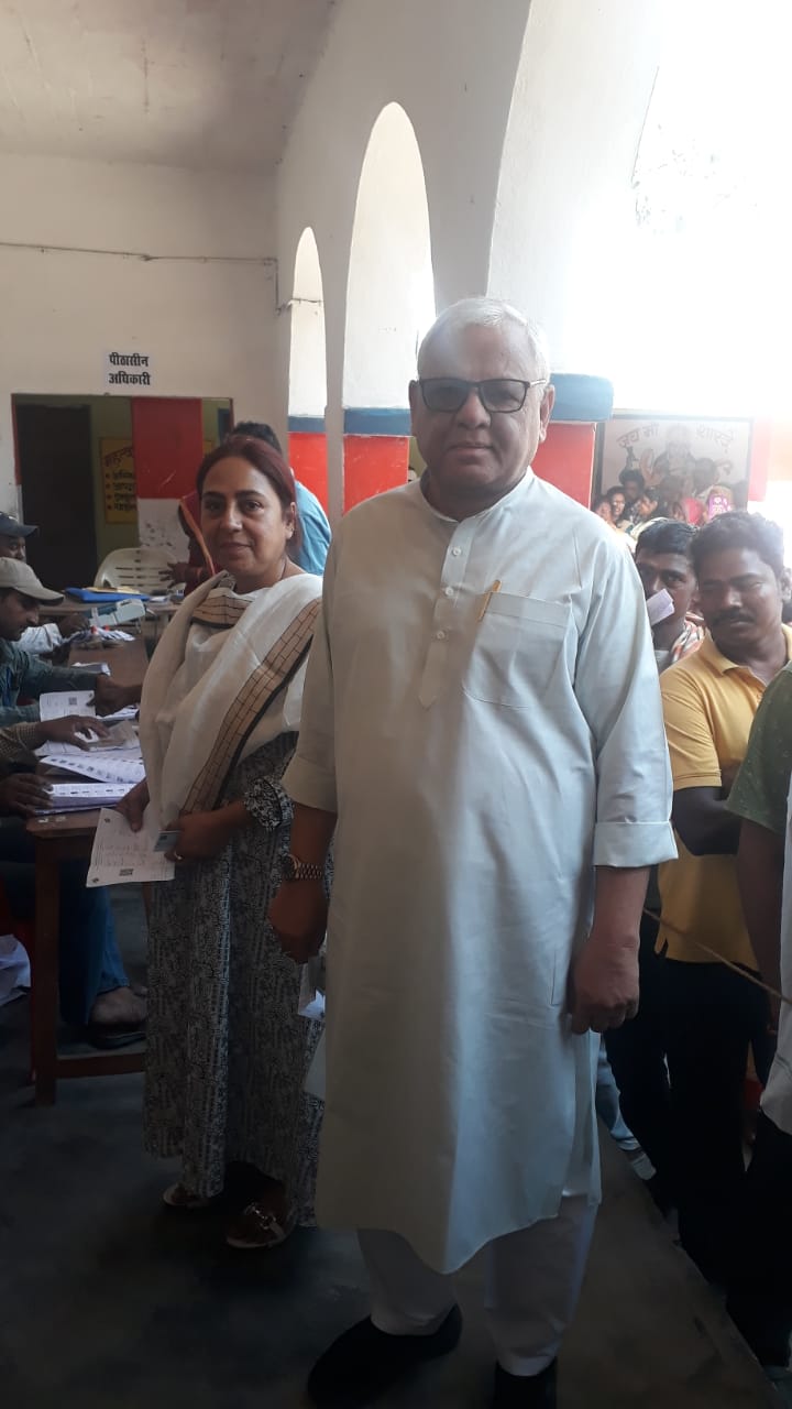 उत्क्रमित मध्य विद्यालय सिरसा अनुसूचित जाति बूथ संख्या 56 पर मतदान करने के लिए कतार में लगे पूर्व राज्यसभा सांसद अशफाक करीम और उनकी पत्नी डॉक्टर शिवा.