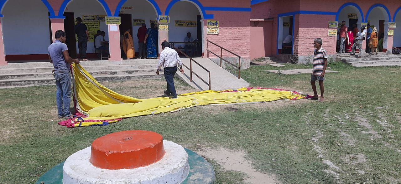 बूथ संख्या 65, 66, 67 और 68 बाडीहाट मध्य विद्यालय पूर्णिया में अभी तक 20 से 25 प्रतिशत हो सका है मतदान. धूप में परेशान लोगों के हल्ला करने के बाद टेंट का किया गया इंतजाम.