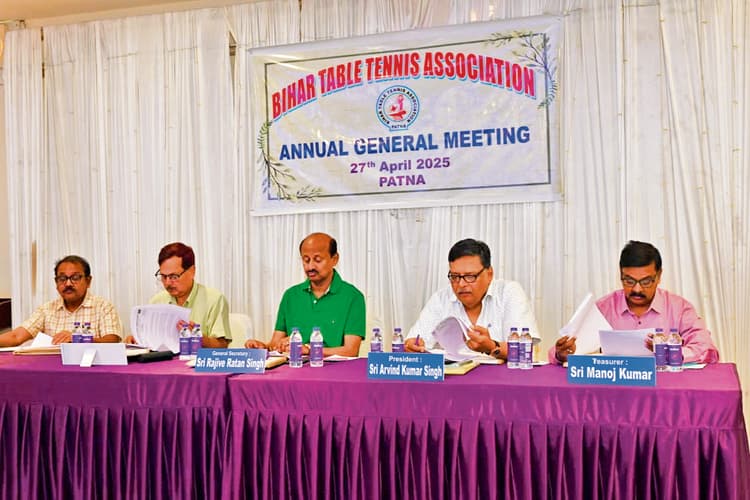 अरविंद कुमार सिंह की अध्यक्षता में रविवार को बिहार टेबल टेनिस संघ की वार्षिक सभा का आयोजन हुआ. इसमें बिहार के सभी जिला संघों के सचिव और अध्यक्ष ने शिरकत की. इसमें कई मुद्दों पर चर्चा हुई. बिहार में टेबल टेनिस की प्रतिभा को आगे बढ़ाने, पुराने वित्तीय वर्ष का लेखा-जोखा और आगामी प्रतियोगिताओं में खिलाड़ियों को हरसंभव मदद करने और आयोजन का रोडमैप तैयार किया गया. सभा में मौजूद विधान पार्षद संजय सिंह ने बिहार को अंतरराष्ट्रीय कोच देने के साथ बिहार में राज्य और राष्ट्रीय स्तरीय की प्रतियोगिता आयोजन की बात कही़ राज्य में स्व महावीर चौधरी की स्मृति में राज्य स्तरीय टेबल टेनिस प्रतियोगिता का आयोजन पटना में करने पर सहमति बनी़ सभा में संघ के सचिव राजीव रत्न सिंह, पूर्व सचिव मुकेश राय, दिलीप कुमार गांधी, राहुल दास, संजय कुमार, पंकज पांडेय, सैयद अशफाक अहमद, डॉ सुनीता बोस, मौसमी चटर्जी, अताणु चटर्जी, सोमनाथ रॉय, किशन राज सहित लोग मौजूद रहे.पांच राज्य स्तरीय प्रतियोगिता का होगा आयोजन :