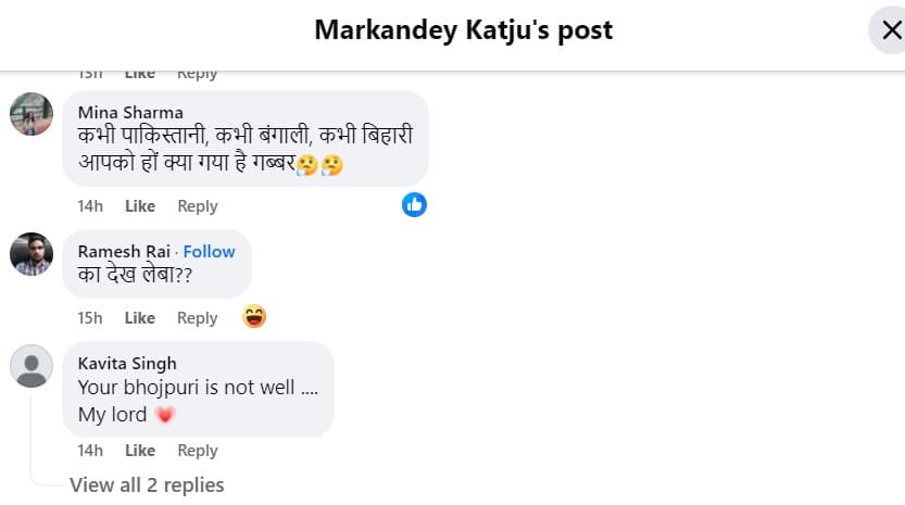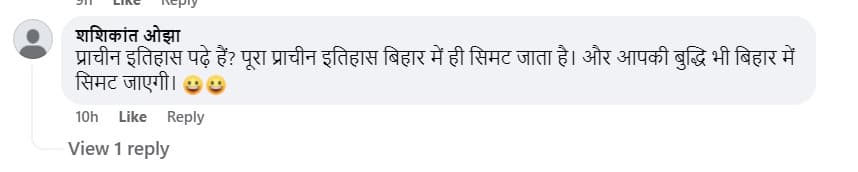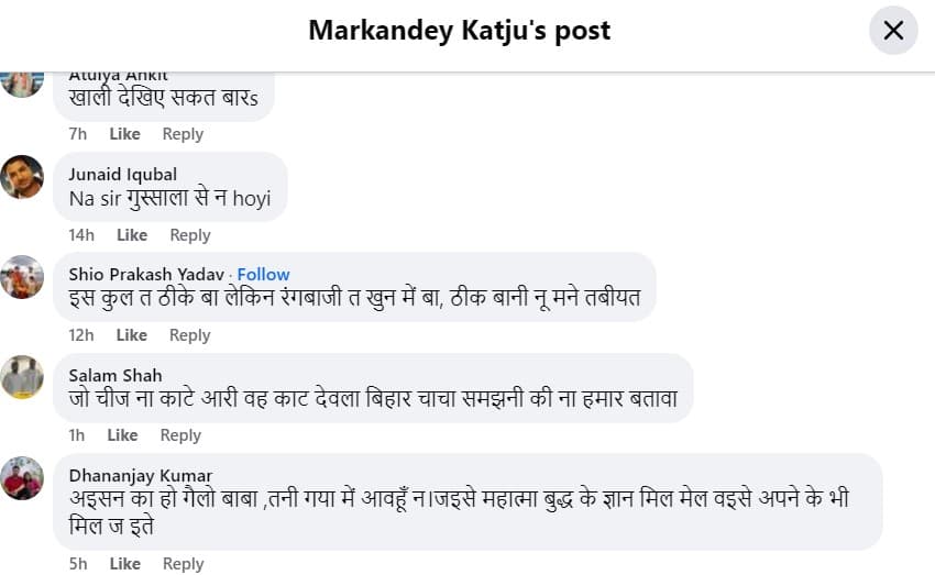 मार्कंडेय काटजू का यह व्यंग कई लोगों को चुभ गया. उन्होंने अपनी भड़ास भी उस पोस्ट पर निकाली. कई लोगों ने सलाह भी दे दी. एक फेसबुक यूजर ने इस पोस्ट पर कमेंट करते हुए लिखा कि ‘आप प्राचीन इतिहास पढ़े हैं? पूरा प्राचीन इतिहास बिहार में ही सिमट जाता है.’